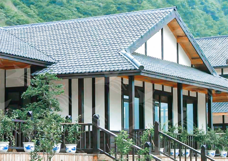 合成樹脂瓦以其輕便、安裝快捷而受到青睞,其超強耐腐蝕性保證了30年的使用壽命,同時具備抗壓、防火、防 震、保溫隔熱及隔音等多重優(yōu)點,性價比極高,適用于各類建筑如工業(yè)廠房、別墅、民宅等。