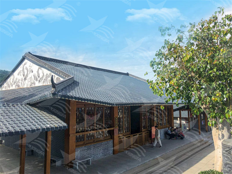 樹脂瓦兼具仿古和現(xiàn)代造型,外觀細膩,無色差,整體磨料均勻,大幅提升了建筑的美觀度。無論是新農(nóng)村建設還是城市建筑,樹脂瓦都能與各種風格完美融合,為建筑增添獨特的視覺效果。